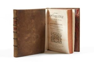 DENYS D'HALICARNASSE. Les Antiquitez romaines, avec des notes historiques, critiques et géographiques. Paris, Grégoire Dupuis, 1722. 2 vol. in-4. Veau d'époque, dos à nerfs orné, pièces de titre et de tomaison de maroquin rouge.