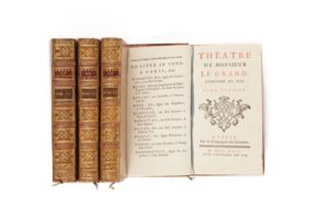 LEGRAND. Théâtre de Monsieur Le Grand, comédien du Roy. Paris, Compagnie des libraires, 1742. 4 vol in-12.  Plein veau d'époque, dos à nerfs orné, pièces de titre de maroquin rouge et de tomaison de maroquin vert. [3] ff, 355 pp ; 501 pp ; 411 pp ; 432 pp.