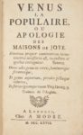 [MANDEVILLE, Bernard (1670-1733)]. Vénus la populaire, ou Apologie des maisons de joye. Londres, …