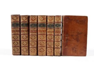 MEZERAY, François de. Histoire de France avant Clovis. L'Origine des François, & leur établissement dans les Gaules. Suivi de : Abrégé chronologique de l'histoire de France. Amsterdam, Antoine & Henri Schelte, 1696 - 1701. 7 vol. in-12. Plein veau blond d'époque, dos à nerfs orné, pièces de titre de maroquin noir, tomaison dorée.