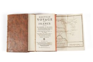 PIGANIOL de la FORCE. Nouveau voyage de France avec un itinéraire, et des cartes faites exprès, qui marquent exactement les routes qu'il faut suivre pour voyager dans toutes les Provinces de ce Royaume. Paris, Guillaume Desprez, 1755. 2 vol. in-12. Plein veau d'époque, dos à nerfs orné, pièces de titre et de tomaison de maroquin. XXIV pp, 392 pp, 7 planches ; 404 pp, 8 planches.