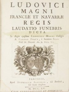 PORÉE Charles. Ludovici Magni  Franciae et Navarrae laudatio funebris. Paris, Stephane Papillon, …