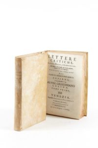 PUPIENI, Conte Agostino Santi. Lettere critiche, Giocose, Morali, e Scientifiche, Alla moda, ed al gusto del secolo presente. Venezia, Angiolo Pasinelli, 1746. 2 vol. in-8. Plein vélin ivoire, titre et tomaison manuscrits.