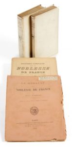 - BATJIN, N. Histoire complète de la noblesse de France depuis 1789 jusque vers l'année 1862 [...]. Paris, Bruxelles, E. Dentu, C. Muquardt, 1862. 1 vol. in-8. Broché, couvertures conservées.
