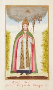 Gouache XVIIIe sur peau de vélin représentant « Saint-Ursin premier Evêque de Bourges ». …