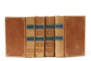 [BREVIAIRE]. Breviarium bituricense, illustrissimi ac. Reverendissimi in Christo Patris D. D. Frederici- Hieronymi De Roye De La Rochefoucauld (...) Bourges, Cristo, 1783. 4 vol. in-12. Plein maroquin brun d'époque, dentelle dorée ornant les plats, dos à nerfs orné, titre doré, tranches dorées.