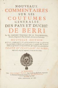 THAUMAS DE LA THAUMASSIÈRE, Gaspard. Nouveaux commentaires sur les coutumes générales du Pays …