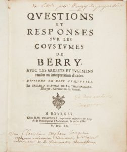 THAUMAS DE LA THAUMASSIÈRE, Gaspard. Questions et responses sur les Coustumes de Berry, avec les …