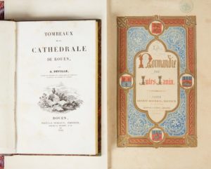 DEVILLE, A. Tombeaux de la cathédrale de Rouen. Rouen, Nicétas Périaux, 1883. 1 vol. in 8. Demi veau d’époque, dos à faux- nerfs orné, titre et auteur dorés.