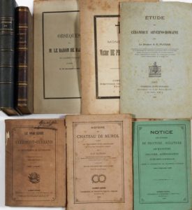 - PLICQUE, Alfred- Édouard. Étude de céramique Arverno- Romaine. Caen, Imprimerie Henri Delesques, 1887. Ex- dono : «À monsieur le comte de la Guère Hommage et souvenir [nom illisible]. Broché.