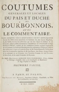 [BOURBONNAIS]. AUROUX DES POMMIERS, Matthieu. Coutumes générales et locales du païs et duché …