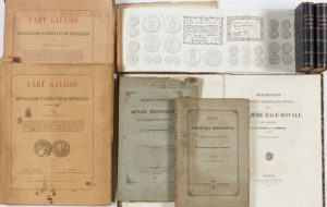 - FOUGÈRES, F. ET CONBROUSE, Guillaume. Description complète et raisonnée des monnaies de la deuxième race royale de France [...]. Tiré seulement à 100 exemplaires. Paris, Chez les auteurs, 1837. Planches et cartes. Demi-basane brune d'époque, dos lisse à faux-nerfs, noms des auteurs et titre dorés.