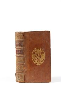 Le Clerc, Jean. Bibliothèque choisie, pour servir de suite à la bibliothèque universelle. Tome XII seul. Amsterdam, Henri Schelte, 1707. 1 vol. petit in-12. Plein veau blond d'époque, armes aux centres des plats, dos à nerfs orné, pièces de titre et de tomaison de maroquin rouge.