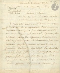 Anvers 8 mars 1793, aux députés de la Convention, et ses commissaires en Belgique. Ayant reçu une lettre de ses collègues de Bruxelles, requérant une mesure importante et urgente, il s’est aussitôt transporté avec ses collègues chez le général Marassé [commandant en chef à Anvers, il passera à l’ennemi avec Dumouriez] : « il parut plus qu’étonné, forma des objections, demanda des délais, proposa d’écrire à Dumourier ; je lui déclarai, que je le sommois au nom de mes pouvoirs d’exécuter sans délai la réquisition qui lui était faite ; il s’apitoyait, il pleurait presque ; je finis par lui dire qu’il serait responsable de tout ce qui adviendrait, et de la moindre opposition. Cela parut le déterminer. […] Les démarches ont été infructueuses ; dois-je en accuser le hazard ou les liaisons et la faiblesse de Marassé ? Ou bien votre arrêté et vos mesures avaient-ils déjà transpiré ? »… Il réclame le pouvoir de casser l’administration et la municipalité provisoires, dont la perfidie risque de provoquer une insurrection populaire… Paris 24 brumaire II (14 novembre 1793). Certificat témoignant d’avoir entendu le citoyen Gail professer « les principes de la république et de la révolution »… [1794 ou 1795], aux représentants du Peuple composant le Comité de Surêté générale. Dénoncé à la Section du Muséum, il se défend contre les accusations d’avoir été « agent du terrorisme dans la Belgique, et d’y avoir contribué, avec Chapy, par la mauvaise conduite, à nos revers », et d’avoir été « complice de la conjuration de Pache », dont il aurait été secrétaire : il invoque la surveillance, en Belgique, des représentants Treilhard, Camus, Merlin de Douai et Gossuin, accuse les Mémoires de Dumouriez d’être la source de la calomnie, et indique les limites de son emploi à la mairie : deux mois de service sans rapport avec Pache… Aussi, « je vous demande representans du peuple de me rendre une liberté que je n’ai pas merité de perdre »…