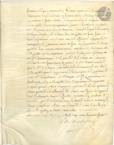 Extrait des registres du Conseil d’État du Roi, exposant l’exécution de la charge attribuée par le ministre de la Guerre en 1762 aux sieurs Alexis-Louis Sainctmarc, Jean-Baptiste Boyer de Saint-Laurent, et trois autres munitionnaires des provinces méridionales, d’agir en régisseurs auprès de ses troupes auxiliaires en Espagne, devant se porter sur le Portugal avec l’armée de Sa Majesté Catholique : opérations de ravitaillement au camp sous Bayonne et jusqu’à Valladolid, en pain de munition ; moyens « extraordinaires et dispendieux » mis en œuvre pour obtenir des blés des habitants ; nécessité de licencier des employés superflus ; soumission des comptes, etc.