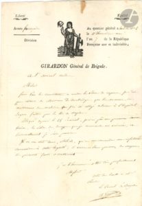 Antoine GIRARDON (1758-1806) général de la Révolution. L.S. comme général de brigade, Q.G. à …