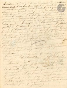 Curieuse lettre évoquant les dettes du jeune officier et futur amiral. [Officier de marine, Ernest Mouchez (1821-1892) effectua sa première campagne au sein de la station navale du Brésil et de La Plata, d’abord sur la Fortune (12 novembre 1839-19 octobre 1840), puis sur l’Églantine (23 novembre 1840-17 mai 1841).] La lettre se rapporte essentiellement aux dettes contractées par Ernest avant et pendant la campagne : « Tout cela m’a fait beaucoup de peine, d’abord par le fait lui-même, et puis par le tort que cela peut te faire »… Il est aussi question de sa demi-sœur, Sophie Finat, qui s’est installée à Madrid ; de l’intention d’Ernest d’effectuer des voyages au long cours ou scientifiques ; de l’achat d’un instrument pour des observations astronomiques, etc.