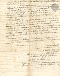 Conseils agronomiques prodigués depuis la ferme modèle d’Emmanuel de Fellenberg, célèbre pour sa réunion d’écoles, d’ateliers et d’innovation dans tous les domaines d’économie rurale. 14 mai 1820. Écrivant « sous les yeux » de son ami, M. de Fellenberg, il accepte de fournir des « socs, ou pieds obtus » en fer, ou d’en envoyer un modèle soigné, pour en faire fabriquer localement. Il l’entretient longuement de la question du labour, qui dépend de la nature du sol ; à Hofwyl, deux charrues labourent de cinq pouces jusqu’à deux pieds de profondeur, et M. de Fellenberg en a imaginé une nouvelle qui combine la charrue anglaise de Small et la charrue belge ; « il forme des jeunes gens, dans son école d’industrie, au maniement des instruments nouveaux »… 28 juin. Il énumère les éléments que les ateliers d’Hofwyl fabriqueront pour lui : de petites charrues, des lames pour « recouvrir les socs d’un extirpateur », des pieds obtus, des pieds tranchants, etc., et suivant l’information fournie sur ses terres, il recommande l’usage d’une « charrue de défoncement » d’Hofwyl. Précisions sur le poids et le prix des charrues… 7 juin 1821. Envoi d’un ouvrage sur les instituts d’Hofwyl, qu’il a publié sous ses seules initiales… On joint une l.a.s. à lui adressée par Centenir, 9 juillet 1820, demandant d’autres précisions sur les articles fabriqués dans les ateliers d’Hofwyl.
