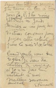 « Depuis bientôt une semaine j’ai donné le bon à tirer pour le portrait litho noire Vendredi ou Jeudi dernier – vous pouvez donc marcher. Nous étions convenus pour payer cette retouche pour le mois d’octobre. Quand voulez-vous me régler ? Je viens de rentrer de voyage et je n’ai pas un instant à moi »…