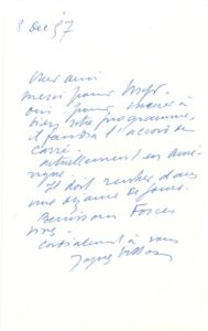 Jacques VILLON (1875-1963). L.A.S., 8 décembre 1957, à un ami ; 1 page in-8. « Oui, pour …