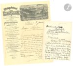 On joint 2 l.a.s. de Massénat, employé de Dufayel (en-tête Affichage National Dufayel), l’une à Bruant (31 déc. 1895), l’autre à Steinlen (8 janvier 1896), indiquant que les reçus ont été retournés à Steinlen. Plus 2 lettres adressées à Steinlen (février-mars 1895) à propos de différends avec le Gil Blas, qui se plaint de son retard à livrer ses dessins.