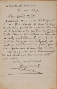 Emmanuel CHABRIER (1841-1894). L.A.S., La Membrolle par Mettray 12 mai 1892, à Émile Zola, …