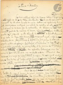 Paul ADAM (1862-1920). Manuscrit autographe signé, La Fin de l’Aventure, [1901] ; 8 pages in-fol. avec ratures et corrections.