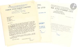 Thomas Steams dit T.S. ELIOT (1888-1965). 10 L.S. « Tom », London 1958-1962, à Ronald Duncan ; 10 pages et demie in-4 dactylographiées, à en-tête de l’éditeur Faber and Faber ; en anglais.