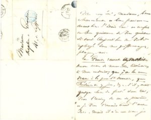 « La Presse raconte ce matin toutes sortes de nouvelles littéraires à mon endroit, que j’ai lu un drame à la Porte St Martin, que Frédérick y joue, &c. S’il y avait quelque chose de fondé dans ceci, vous l’auriez su une des premières, et je vous l’aurais conté l’autre soir. Mais il n’en est rien. Je n’ai lu aucun drame à la Porte St Martin, ni ailleurs. J’ai assez à faire de mes deux volumes et de mon discours [Le Rhin et son discours de réception à l’Académie française]. (Entre nous, madame, cette historiette a le léger inconvénient de me faire recevoir depuis ce matin dix visites de comédiens et de comédiennes me demandant des rôles.) Si vous pensez, madame, que la chose vaille la peine d’être rectifiée, je dépose ma petite réclamation, non entre vos mains, mais à vos pieds »…