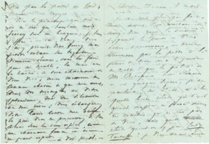 « Je ne sais plus que faire, mes lettres vous arrivent-elles ? […] Je prends le parti de vous écrire directement, et tout bêtement par la poste à la grâce de Dieu et à la garde du Diable ! Que la police de M. Bonaparte soit clémente de ces quelques lignes ; je ne parlerai ni d’elle, ni de lui. Quelle bonne chose que l’exil quand on joue en France toutes les comédies qui ne sont pas de vous, mais quelle triste chose quand on y joue Lady Tartuffe ! Je vous avais écrit dans la joie du succès. Je vous envoyais mon bravo et mon applaudissement – et penser qu’ils ont probablement intercepté cela ! Faut-il qu’ils soient bêtes ? Qu’y a-t-il de commun entre un applaudissement et eux, entre l’enthousiasme et eux, entre la gloire et eux ? – Mais pardon, j’avais promis de n’en point parler. Donc, face à face avec ce régime, vous continuez l’esprit, la lumière, la poésie, le succès, les grandes traditions de la pensée et de la France. Je vous en remercie au nom de toutes deux. On me dit le succès de Lady Tartuffe immense. L’autre jour, jouant avec l’avenir, c’est le jeu favori des proscrits, je disais : qui sait ? Nous serons peut-être à Paris avant que les représentations de Lady Tartuffe soient finies. – Victor m’a dit : – Cela ne prouverait pas que l’empire durera peu. – Je vous envoie le mot »… Il assure son amie de leur admiration et leur affection : « Quand je pense à la France, et c’est toujours, je pense à vous. Il semble que vous soyiez pour moi une partie de la figure de la France »… Il rappelle sa promesse de venir à Jersey : « Vous verrez ma petite cabane sur laquelle viennent écumer, sans lui faire peur ni trouble, la mer et la haine. Ce sera charmant de vous voir ; nous mettrons en commun chacun ce que nous avons, vous vos trompettes et votre splendeur, moi ma solitude et mes rêves : vous échangerez votre Paris contre mon océan. Et puis vous me permettrez de vous aimer sous les deux espèces, comme une charmante femme et comme un grand esprit »…