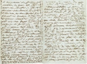 Victor HUGO. L.A., Marine Terrace [Jersey] 2 mai [1854], à Delphine de Girardin ; 4 pages petit in-8 remplies d’une écriture serrée.