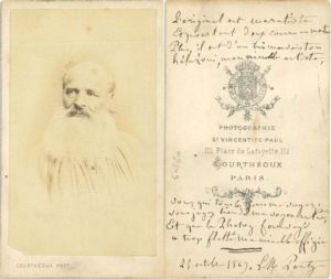 Louis-Marie PONTY (1803-1879) poète-ouvrier et chansonnier. Photographie avec dédicace a.s. au dos, 25 octobre 1869 ; photographie par Courthéoux format carte de visite.