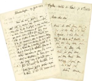 Belles lettres d’exil. Blankenberghe 29 juillet 1853. Il se félicite d’avoir trouvé « dans le naufrage », des affections telles que la sienne, et raconte qu’un intime fit semblant de ne pas le reconnaître à Spa ; il ne regrette pas son rôle de Lépreux de la cité d’Aoste, estimant se retrouver « dans la liberté primitive »… Il rappelle la création de la République hollandaise par une poignée de « gueux de mer », puis parle de ses recherches sur Marnix, et de la prochaine publication des derniers volumes de la Révolution de Michelet… Veytaux (Vaud) 7 octobre 1860. Ils ont visité le mois dernier Dufraisse, Flocon et Charras. « De France, hélas il ne vient pas un souffle. […] Une partie de la démocratie a plié le genou, depuis que les affaires d’Italie ont donné l’occasion qu’on attendait pour se soumettre. Tout serait donc perdu, si le salut devait venir des masses. Mais l’expérience nous a bien montré que les peuples sont conduits par quelques hommes, et que les masses jouent dans la tragédie humaine le rôle du chorus qui approuve toujours l’action accomplie. Ôtez du 18e siècle, Voltaire et Rousseau ; il n’y a plus de Révolution Française »… Il parle aussi de Merlin, de son envie de lire Proudhon, de Garibaldi et de la mort de Paul de Flotte…