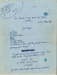 Maurice rostand (1891-1968). Manuscrit autographe signé « M.R. », Le Songe d’un soir de Noël, mystère, septembre [1934] ; 17 pages in-4 à l’encre bleue au recto de feuillets de papier bleuté (qqs lég. taches d’humidité).