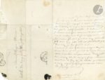 George SAND. L.A., [Paris 28 mars 1833], à Prosper Mérimée ; 1 page in-8, adresse. Une des …
