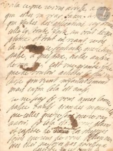 « Voila ce que je vous adresse, a vous qui estes un vray badin, a vous qui faites des aplications, jay trouvé celle cy, toute faite au bout de ma plume et tout en riant, je dis la verité, je souhaitte que le temps passe, a quel prix, helas au prix de ma vie, cest une grande folie que de vouloir acheter sy cher, une chose qui vient infailliblement mais enfin cela est ainsy.