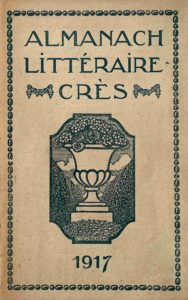 SEGALEN (Victor) — « Chronique des jours souverains (fragment) » (pp. 146-156), dans Almanach littéraire Crès 1917. Paris, Zürich, [Georges Crès], 1917. In-16, (2)-205-(1) pp., papillon d'errata conservé, broché, chemis
