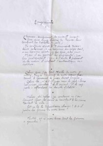 16e « stèle » du recueil imprimé en 1912, dans la plus aboutie des 6 versions que Victor Segalen rédigea entre septembre 1910 et juin 1911. Il a utilisé ici, comme souvent pour ses manuscrits littéraires et sa correspondance, un papier calque légèrement sulfurisé, fabriqué par les établissements Morin, qu'il appelait parfois « papier d'architecte ». « [...] Hélas, oh ! hélas. Les contours ne s'en-ferment plus ; les coins se heurtent & les creux tintent le vide... Est-ce là le dépositaire choisi ? A-t-il perdu la forme de mon âme ? Plutôt, est-ce mon âme dont la forme a gauchi ? » Paroles de Chouen, un des « cinq empereurs » mythiques. Victor Segalen fit de nombreuses références à l'empereur Chouen (Shun), image traditionnelle du dirigeant modèle, dans Peintures, Le Fils du Ciel, Le Combat pour le sol. Ici, pour Stèles, il s'inspire d'un passage du Cheu-King (Shujing), classique de l'histoire chinoise, qu'il lut dans l'édition procurée par Séraphin Couvreur en 1896 (Chou-King : Les Annales de la Chine, imprimerie de la mission catholique de Ho Kien Fou). Victor Segalen fait parler cet empereur Chouen au sujet d'une pratique traditionnelle de gouvernement : pour donner son investiture aux cinq catégories de princes qu'il envoyait administrer ses différents territoires, il leur remettait une tablette de jade ornée des attributs de leur catégorie et conservait de son côté une empreinte de ces tablettes moulée en creux. Par la suite, quand le souverain recevait ces princes en audience, il vérifiait que chacune des tablettes qu'il rapportaient coïncidait avec l'empreinte correspondante pour s'assurer de leur identité. Victor Segalen donne cependant une conclusion spirituelle La première « stèle » écrite par Victor Segalen, « qui la considérait comme majeure [...]. Cet apologue de l'amitié gauchie résume une pensée complexe qui traverse, d'un même trait, l'œuvre et la vie de Segalen. On sait, en effet, la place que tiennent dans l'une aussi bien que dans l'autre, les amitiés, essentiellement masculines [...]. Le chapitre xxvii d'Équipée (« L'Ami trop fidèle » [...]) présente l'image de la désillusion que René Leys poussera à son paroxysme. Il prolonge, dans la prose du voyageur, ce qu'« Empreinte » dit par allégorie : l'altération à laquelle toute amitié est incessamment exposée » (Victor Segalen, Œuvres, Paris, Gallimard, Nrf, Bibliothèque de la Pléiade, p. 1074). Une des quatre « Stèles » autographes que Victor Segalen expédia de Pékin à Claude Debussy le 6 janvier 1911. Provenance : Annie Joly-Segalen, fille de Victor Segalen, qui avait acheté le manuscrit à la belle-fille de Claude Debussy, Hélène de Tinan. Épouse de Gaston de Tinan, celle-ci était la fille qu'Emma Moyse, épouse de Claude Debussy, avait eue d'un premier mariage avec Sigismond Bardac.