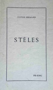 Volume de format 288 x 142 mm : feuilles de différentes tailles imprimées sur une seule face, jointes et pliées à la chinoise en portefeuille régulier formant 104 pp. dont les 2 premières et la dernière blanches, papier gris appliqué sur les première et dernière pages de couverture, pièce de titre imprimée collée sur la première page de couverture ; le tout placé entre deux ais de bois, titre en caractères chinois gravé et rehaussé de vert sur le premier plat : « 古今碑録 » soit, selon la traduction de Victor Segalen, « Recueil de stèles anciennes et quotidiennes »), liettes de tissu grège ; quelques rayures sur les plats, cassure angulaire restaurée sur le premier plat (reliure de l'éditeur). Édition originale, hors commerce, un des 81 exemplaires numérotés sur papier impérial de Corée, le n° 3, parmi les 21 exemplaires de tête sur papier plus épais. 3 sceaux ont été appliqués à la main, au cinabre. Sur le détail du tirage, et sur les sceaux, cf. supra le n° 68. Envoi autographe signé, en français et en chinois : « À Claude Debussy, du fond de la Chine & de moi-même, en très fidèle et profonde affection. Tchang-Teh-Fou, octobre 12. Victor Segalen 鄙撰送呈 樂師 府納 » La dédicace en caractère chinois peut se traduire ainsi : « Cet humble ouvrage offert au maître de la musique en respectueux hommage ». Segalen se trouvait en fait alors à Kenan, près de Tchang-te-fou (Changde) : là était située la résidence d'été du président de la toute récente République chinoise, Yuan Shikai, dont il soignait le fils. Segalen et Debussy : amitié d'un compositeur littéraire et d'un littérateur mélomane. Victor Segalen avait pratiqué le violon, le piano, et avait composé des mélodies sur des textes d'Albert Samain, Remy de Gourmont ou encore Gustave Flaubert. À l'écoute de Pelléas et Mélisande, il était devenu un admirateur fervent de Claude Debussy, et avait fait tous ses efforts pour le rencontrer, ce qu'il réussit à faire en 1906 par l'intermédiaire de Claude Farrère et Pierre Louÿs, nouant alors une relation amicale au cours de laquelle il nota la teneur de leurs entretiens. Claude Debussy joua de son influence pour lui permettre de publier un article « Voix mortes : musiques maori » au Mercure musical le 15 octobre 1907, et consentit à une collaboration avec lui sur une œuvre lyrique. Victor Segalen lui soumit un premier texte, sur la vie de Bouddha : Siddharta, mais la réponse fut une manière de refus élogieux : « Prodigieux rêve ! Seulement, dans sa forme actuelle, je ne connais pas de musique capable de pénétrer cet abîme ! Elle ne pourrait guère servir qu'à souligner certains gestes ou à préciser certains décors. En somme, une illustration, beaucoup plus qu'une parfaite union avec le texte » (26 août 1907). En revanche, la même lettre de Claude Debussy réagissait à un article que Victor Segalen avait fait paraître dans le Mercure de France le 16 août 1907, « Dans un monde sonore », et qui évoquait la figure d'Orphée : le compositeur faisait cette remarque en forme d'avance : « Ne pensez-vous pas qu'il y aurait quelque chose d'inouï à faire entendre dans ce nouveau mythe, d'Orphée ? » Victor Segalen s'attela alors à la rédaction d'Orphée triomphant, pièce devenue ensuite Orphée-roi, qu'il amenda à deux reprises en suivant les remarques de Claude Debussy – mais celui-ci, bientôt malade, renonça à composer l'œuvre attendue. Victor Segalen lui écrivit de belles lettres de Chine, lui adressa un échantillon autographe de 4 « stèles » avant publication, lui dédicaça un exemplaire imprimé du recueil Stèles, et aurait souhaité lui dédier l'édition de ses Odes. Tous deux moururent prématurément, Claude Debussy en 1918, et Victor Segalen en 1919. Ce volume a été présenté dans l'exposition Claude Debussy tenue à la Bibliothèque nationale en 1962 (n° 190 du catalogue). L'envoi autographe à Claude Debussy a été reproduit sur la couverture de l'ouvrage Segalen et Debussy, édité en 1962 par la fille de Victor Segalen, Annie Joly-Segalen, et par le musicologue André Schaeffner (Monaco, Éditions du Rocher).
