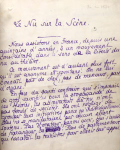 Apologie de la nudité au théâtre, face à l'offensive des ligues de vertu. La suppression de fait de la censure théâtrale en 1906 conduisit à une floraison de spectacles dénudés qui provoqua de fortes réactions dans les milieux religieux et traditionnels, notamment du fameux « Père la pudeur », le sénateur René Bérenger. Dans le cadre de cette polémique, Pierre Louÿs s'engagea en faveur d'une totale liberté, publiant notamment la présente tribune dans Le Journal du 27 avril 1908. « Nous assistons en France, depuis une quinzaine d'années, à un mouvement considérable dans le sens de la liberté du nu au théâtre. Ce mouvement est d'autant plus fort qu'il est anonyme et spontané. On ne lui connaît pas de chef, pas de meneurs, pas d'organe... L'opinion favorable ou indifférente à la nudité a pris naissance dans les milieux artistiques ; puis elle est peu à peu devenue populaire et mondaine, c'est-à-dire générale. Aujourd'hui, les sentiments à cet égard ne font plus de doute pour personne, puisque depuis un certain temps on a pu donner à Paris deux mille représentations théâtrales où figuraient des actrices nues, sans provoquer un scandale. Je dis : pas un. Voici donc une opinion qui s'est répandue d'elle-même et qui a obtenu la majorité sans campagne, avec la seule force du bon sens. Le public a très vite compris que la question du nu intéressait uniquement la loi religieuse, non la loi civile ; et que, d'admirer une femme nue, si peut-être c'était un péché, ce n'était sûrement pas un délit. Une artiste accepte de jouer sans costume ? C'est une affaire entre elle et son confesseur si elle en a un. Ce n'est pas une affaire entre elle et le juge d'instruction. Aucun article de nos lois n'est applicable dans la circonstance, puisqu'on ne peut soutenir sérieusement qu'une femme nue outrage la pudeur des citoyens qui paient cent sous pour la voir... Rue Bonaparte, l'État dirige la plus vaste école supérieure du monde, en quelque faculté que se classent ses rivales. On y enseigne les Beaux Arts. Chacun de nos artistes est obligé de passer par cet établissement. C'est une loi tacite, mais formelle. Les peintres qui désirent rester indépendants se voient refuser tout appui jusqu'à l'heure où ils sont devenus célèbres par leurs propres forces, ce qui n'arrive généralement que lorsqu'ils sont morts à la peine... Et l'État qui paie des modèles pour les déshabiller devant ses jeunes élèves, est le même État qui dit aux artistes actuellement poursuivies : "Vous avez joué Galatée, Mademoiselle ? Je vous envoie à Saint-Lazare..." Ce sont "les intérêts de l'art" qui commandent d'imposer le spectacle du nu rue Bonaparte. Les mêmes intérêts autorisent dans les salles de nos musées le mélange des sujets nus et des sujets habillés, de telle sorte que personne ne peut montrer à son fils un austère Philippe de Champaigne, sans lui présenter en même temps une petite amie de Fragonard, toute nue sur son lit d'amour, la chemise enlevée et les jambes au plafond. Mais dans les théâtres, qui nous laissent au contraire une pleine indépendance de choix (les pères étant parfaitement libres de conduire leurs filles à la Comédie-Française sans les mener à l'Olympia), là, les intérêts de l'art n'autoriseraient plus rien... Or le théâtre est bien plus qu'un art : il est le Parnasse entier. Le peintre et l'architecte lui apportent leurs décors, le poète son livret, le musicien sa partition, l'acteur son jeu, le chanteur sa voix humaine, l'instrumentiste sa voix surhumaine ; et puis l'ingénieur lui porte ses machines, le joaillier ses bijoux, l'artisan ses meubles, ses vases, ses costumes ; et le savant est là qui conseille, l'historien est appelé, donne son avis, dirige. Un opéra résume l'effort intellectuel de toute une époque. "Il ne s'agit pas de l'Opéra, me dit-on, mais d'un music-hall." Ayez donc d'abord moins de mépris pour les music-halls ; Lohengrin nous a été donné pour la première fois à l'Eden-Théâtre. Ensuite, ayez quelque patience. L'Opéra est le but évident du mouvement actuel... Donc, si par aventure les poursuites actuelles ne se terminaient pas, comme on le présume, par un acquittement pur et simple, les spectacles nus recommenceraient tout de même après un bref intervalle, parce que le mouvement est désormais trop considérable pour être arrêté ; mais au lieu de s'anoblir ils s'aviliraient. Le public réclamerait des artistes : on ne pourrait plus guère lui montrer que des grues, les directeurs se voyant obligés de choisir leurs interprètes parmi les jeunes filles que Saint-Lazare n'intimide plus... »