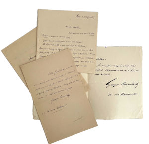 À l'éditeur Alphonse Lemerre. [1887]. Concernant entre autres l'« étude sur les poètes » qu'il a fait paraître dans la revue La Société nouvelle. — À l'administrateur de la Comédie-Française Jules Claretie. [1888, d'après une note au crayon d'une autre main]. « Je me permets de vous rappeler la promesse si aimable que vous m'avez faite de m'accorder quelques entrées à la Comédie-Française pour le Journal de Bruxelles, où j'envoie de Paris un feuilleton d'art hebdomadaire... » — À un directeur de revue. [1897, d'après une note au crayon d'une autre main]. Concernant son portrait peint par Lucien Lévy-Dhurmer. — À son « cher ami ». S.d. « Mille félicitations... pour le juste honneur accordé à l'éditeur si artiste que vous avez été et dont le nom restera lié à de grands souvenirs littéraires, croyez bien que nous sommes de moitié dans tous vos bonheurs... » — Au poète Émile Dodillon. S.d. Il repousse l'accusation formulée à son encontre par de « petits camarades » d'avoir plagié un passage d'un poème de son correspondant. Il cite les deux vers en question du poème « Le voyage dans les yeux » de son recueil Les Vies encloses paru en 1896 : « Yeux comme un petit port, avec un seul bateau / Qui s'avoue humble et que nul trafic achalande ». — À l'écrivain Léon Cladel. S.d. Invitation à dîner avant un départ « en villégiature lointaine ».