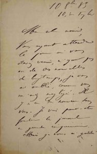 Lettre autographe signée à son « cher ami ». Paris, 10 octobre 1883. Il annonce la refondation du Cri du peuple, et la parution de la suite de L'Insurgé. Il dit qu'il publiera dans le journal le livre de son correspondant. — Lettre autographe. S.l.n.d. Très longue lettre sur son roman Les Blouses, fresque politique débutant en 1848 et s'achevant en 1871, paru après sa mort, en 1919. — Joint, 2 fragments de lettres autographes, sans doute au même que la précédente, également sur Les Blouses.