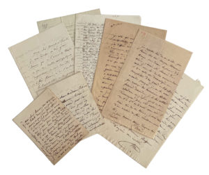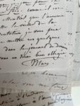 À l'écrivain Charles Brifaut. 1830. Pour une lecture à la Comédie française. — Au journaliste Armand Bertin. « Ce 14 ». Pour demander que soit annoncé son prochain spectacle. — À un professeur d'art dramatique. [1845]. Belle lettre de recommandation pour faire entrer un jeune acteur au Conservatoire. — Au comédien Mainvielle. 1830. Belle lettre sur la vie d'artiste désargentée : « ... Le chemin n'est pas cousu d'or... ». — À l'écrivain Jacques Arago. S.d. Concernant la lecture du manuscrit d'une de ses œuvres. — À l'auteur dramatique René-Charles Guilbert de Pixérécourt, directeur de l'Opéra-comique. S.d. Pour lui rendre compte de l'échec de sa démarche auprès du comédien Benoît Roussel dit Armand. — Au chef de la censure théâtrale Hygin-Auguste Cavé, directeur des Beaux-Arts. S.d. Pour se plaindre de ne pas recevoir de gratification de l'État alors que Gioachino Rossini a été récompensé. — Etc. Créatrice du rôle de Doña Sol dans Hernani en 1830, Mlle Mars (1779-1847) fut une des principales comédiennes françaises de l'Empire et de la période romantique. Enfant de la balle, elle fit des débuts précoces en 1791, à l'âge de douze ans, et entra à la Comédie-Française en 1795 dont elle devint sociétaire quatre ans plus tard. Formée par Dugazon et mademoiselle Contat, elle remit à la mode Molière et Marivaux, et ses succès l'autorisèrent à se montrer autoritaire, capricieuse avec ses collègues et ses auteurs. Elle suscita l'admiration, entre autres, de Stendhal qui, dans son journal, écrivit des appréciations admiratives en 1805 et 1810 (« Elle est divine, elle est parfaite »), et fut la comédienne préférée de Napoléon Ier qui lui dit à Dresde en 1813 : « Croyez au reste, mademoiselle, que j'ai toujours applaudi, avec toute la France, à vos rares talents. » D'une grande beauté, elle eut une liaison avec le général Charles de Flahaut, ce qui provoqua la rupture entre celui-ci et la reine Hortense. À la Restauration, elle fut du « parti des Abeilles » à la Comédie-Française, avec Talma et Mademoiselle George. Elle vint au répertoire romantique par calcul plus que par goût et créa notamment les rôle de la duchesse de Guise dans Henri III et sa Cour d'Alexandre Dumas (1829), celui de Desdémone dans Le More de Venise d'Alfred de Vigny (1829), de Doña Sol dans Hernani de Victor Hugo (1830), de la Tisbé d'Angelo du même Hugo (1835).