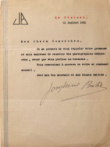 Baker (Joséphine). 2 pièces, soit : une lettre signée à ses « chers camarades », « Je... suis anxieuse de recevoir vos photographies dédicacées... » (1931, sur beau papier à en-tête dans le style art-déco) ; contreseing sur une carte autographe signée de son compagnon et impresario Giuseppe Abatino dit Pepito, adressée à l'historien et journaliste Jacques Mortane (Budapest, 1929). Joint, une lettre signée de son époux le chef d'orchestre Jo Bouillon, 1959.