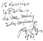 Seconde réimpression (et nouvelle composition) de l’édition illustrée par Gen Paul publiée en 1942 et comportant 15 compositions à pleine page. Tirage non précisé. Exemplaire unique, dont les compositions ont été rehaussées en noir à la gouache et à l’encre par Gen Paul, sauf 3 qui ont été mis en couleurs (vignette de titre, pages 15 et 37).