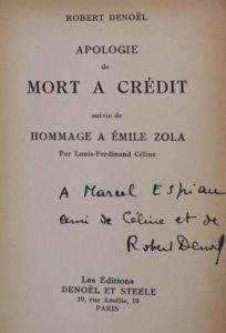 DENOËL (Robert) — Apologie de Mort à crédit. Suivi de "Hommage à Émile Zola" par Louis-Ferdinand Céline.