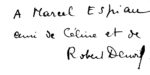 Un des 3.000 exemplaires du tirage ordinaire non numéroté (le tirage sur grand papier a été limité à 20 exemplaires numérotés). Précieux exemplaire portant sur la page de titre cet envoi autographe non signé de Robert Denoël: à Marcel Espiau / ami de Céline et de / Robert Denoël.