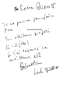 Exemplaire de Pierre Gripari portant cet amical envoi de l’éditeur : À Pierre Gripari, tu ne pourras pas faire lire / ton éditeur préféré / PS (si j’ose) je t’ai réservé le meilleur N°. (?) Paris, juillet 75.