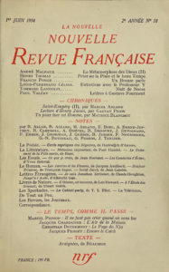 Édition pré-originale de ces entretiens figurant dans les 5 numéros de la NNRF. Cette pré-publication n’a pas fait l’objet de tirés à part. Ces cinq parties seront réunies en un volume, publié chez Gallimard le 1er mars 1955.