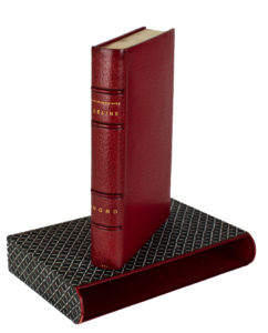 In-8, maroquin janséniste rouge, dos à quatre nerfs portant le nom de l'auteur, le titre de l'ouvrage er la date de l'édition poussés or ; doublures et gardes de papier dominoté, tête dorée, non rogné, couverture iprimée. Etui.